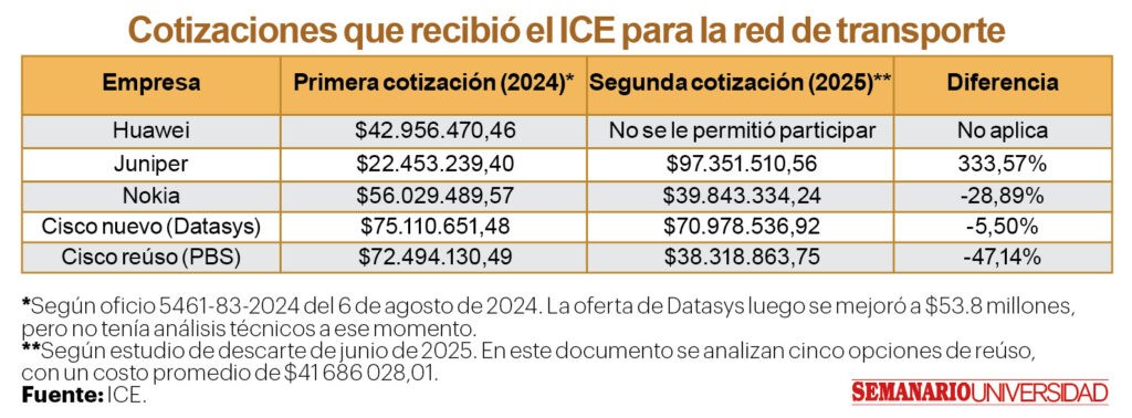 Según el estudio de mercado del propio ICE (junio 2025), las ofertas para sustitución completa de equipos fueron: